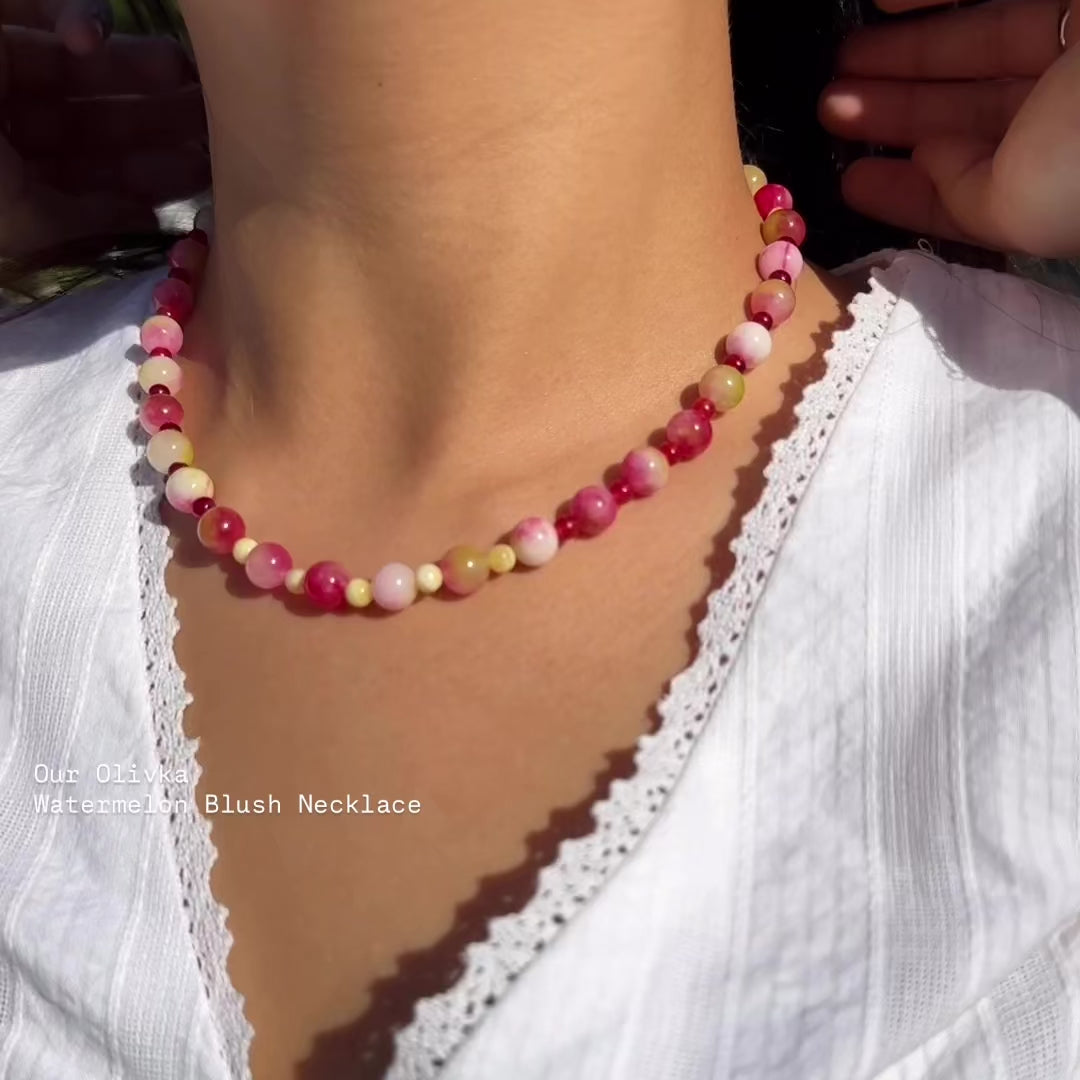 Hand-strung with smooth Persian jade beads in soft pink and subtle green hues, this necklace is the perfect pop of colour for your everyday look and makes getting dressed way more fun.