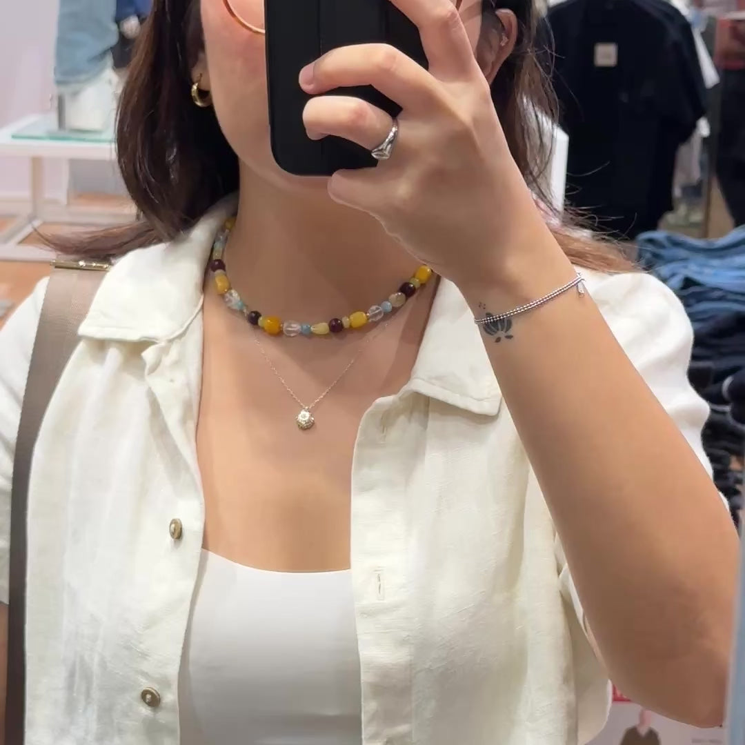 Our Sienna necklace is a radiant, hand-beaded piece featuring natural gemstones. A joyful pop of color that elevates any outfit, from a crisp button-down to your favorite tee. Perfect for sun-soaked escapes and slow, golden evenings abroad too.
